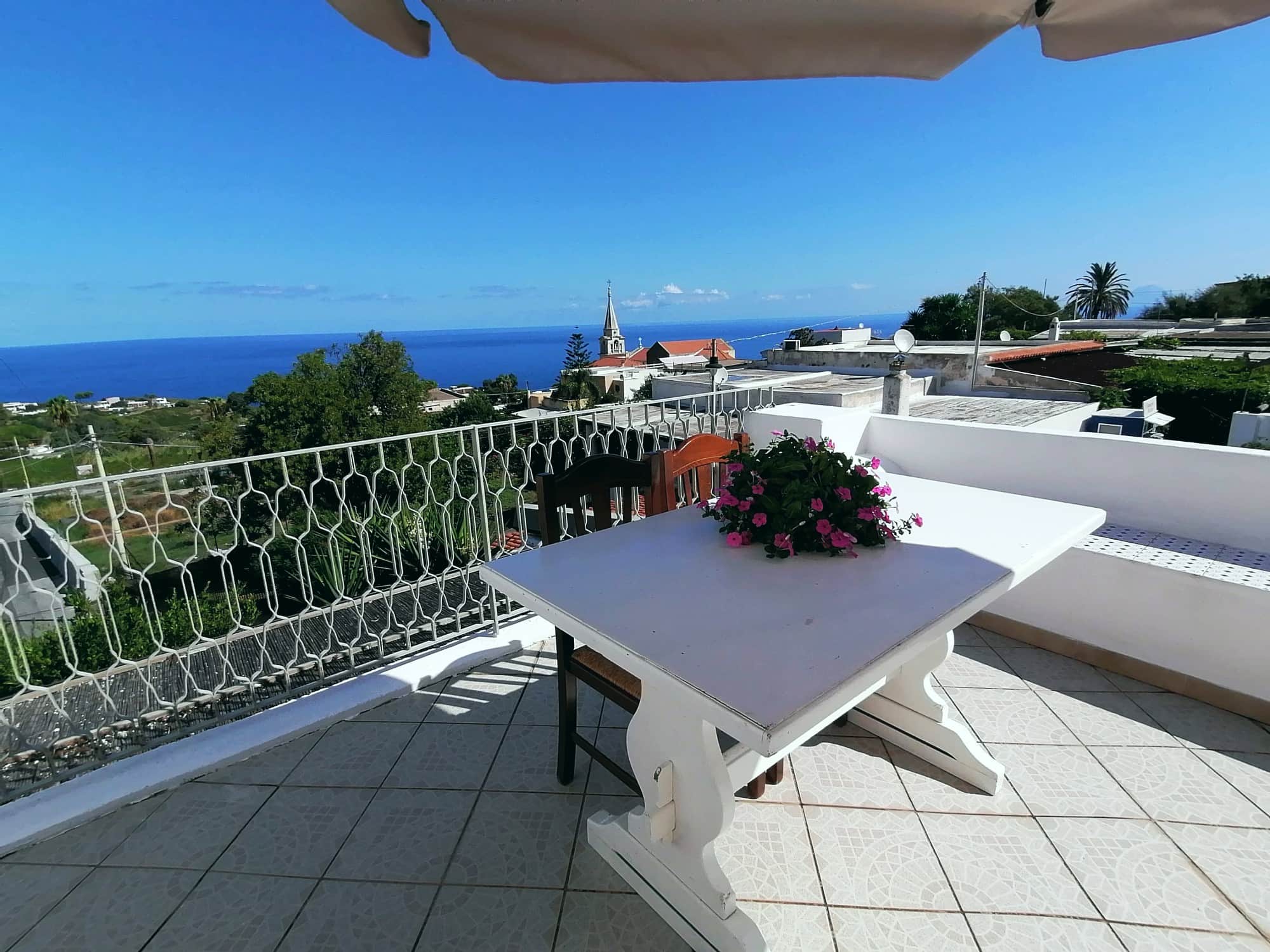 Terrazza panoramica di Casa Zagami a Malfa, isola di Salina, attrezzata con tavolo vista mare